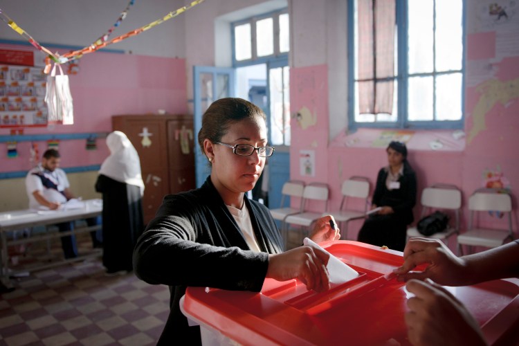 A woman votes at a polling station in Tunisia, 2011